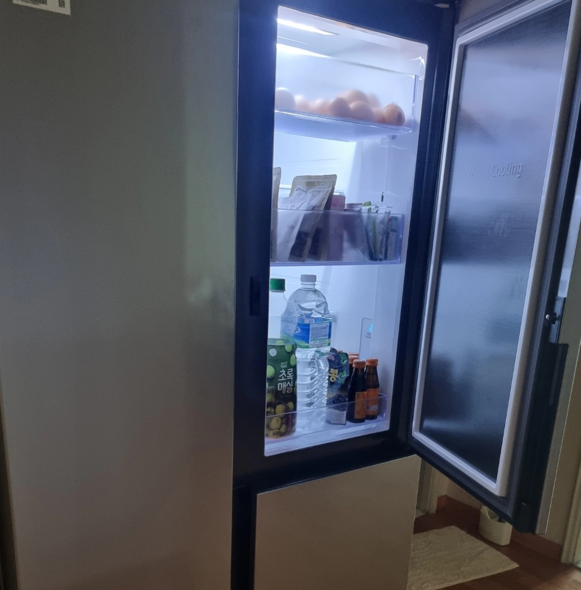 저 역시 이 제품을 사용 중인데, 푸드쇼케이스의 편리함을 몸소 느끼고 있습니다. 자주 꺼내 먹는 음료수나 양념통을 푸드쇼케이스에 넣어두면 냉기 손실을 최대 55%까지 줄여준다고 하니, 자주 냉장고 문을 열어도 전기 요금 걱정이 없어요. 특히 어린 아이들이 있는 집에서는 잔소리를 덜 할 수 있어서 좋습니다. 저는 맨 위에는 양념통, 중간에는 아이들 음료수와 요거트 같은 간식, 맨 아래에는 우유와 긴 소스병 등을 넣어두고 사용하고 있습니다. 정말 편리하죠!