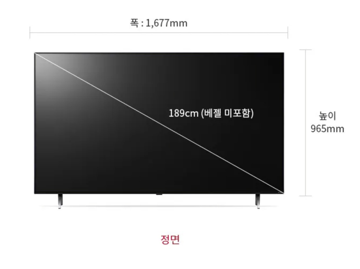 아직까지 이 TV를 사용하면서 큰 단점은 느끼지 못했어요. 다만, 다른 리뷰에서 언급된 것처럼 티비 크기를 고려해서 설치하는 편이 좋아요. 저희집은 20평대 아파트에 거주하고있는데 86인치 TV랑 고민많이 하다 75인치로 최종결정 했거든요. 저희집엔 딱이 었던것 같아요.