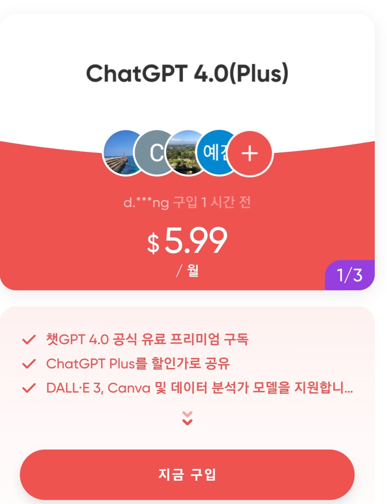 이제 본격적으로 챗GPT 유료 버전을 저렴하게 구독할 수 있는 방법을 소개할게요. 제가 추천하는 공유플랫폼 사이트는 겜스고입니다. 이곳을 통해 유료 플랜을 3~4배 가까이 절감할 수 있습니다. 사이트에 접속한 후, 챗GPT 4.0 PLUS 항목으로 이동하면 쉽게 구매할 수 있답니다. 이 사이트는 사용자 친화적인 인터페이스를 제공하므로, 처음 이용하는 분들도 쉽게 접근할 수 있습니다.