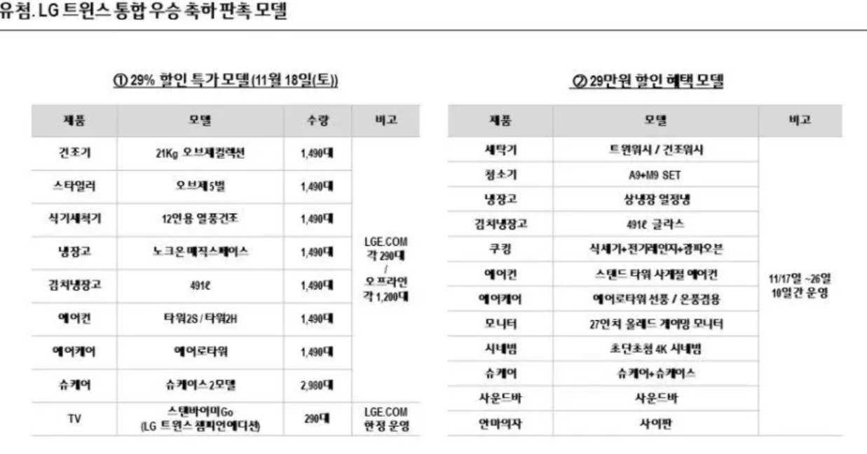 LG 우승 할인 품목 29% 윈윈페스티벌 통크게 쏘나?