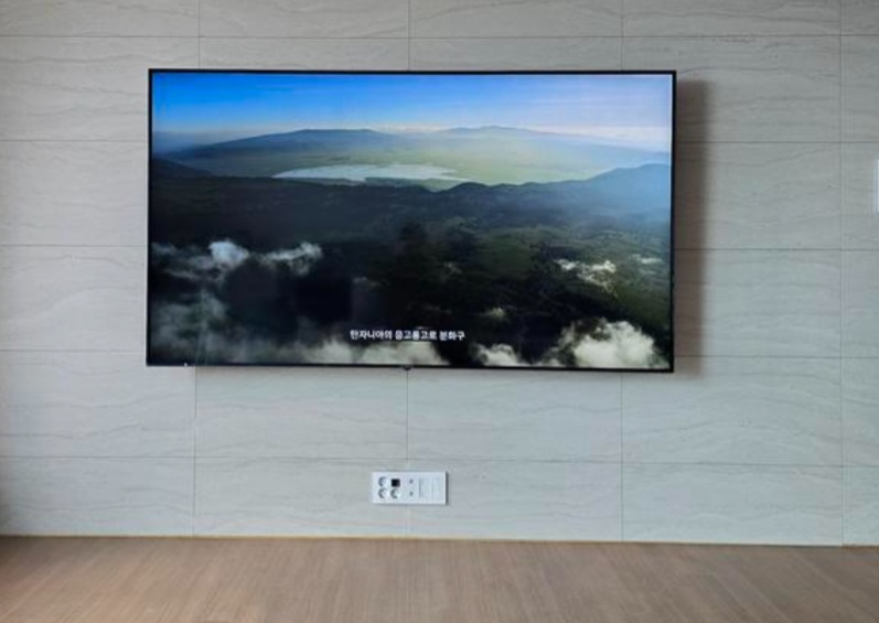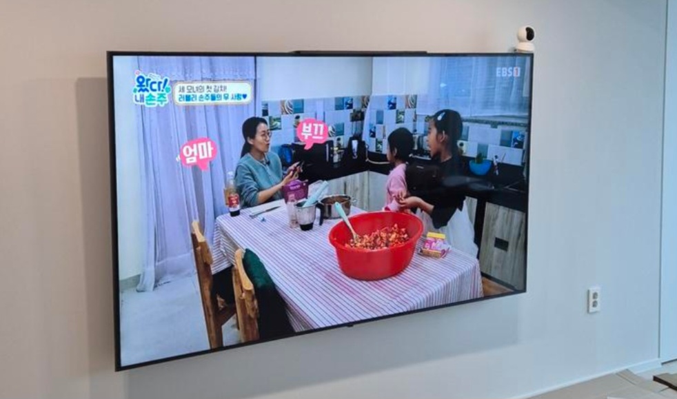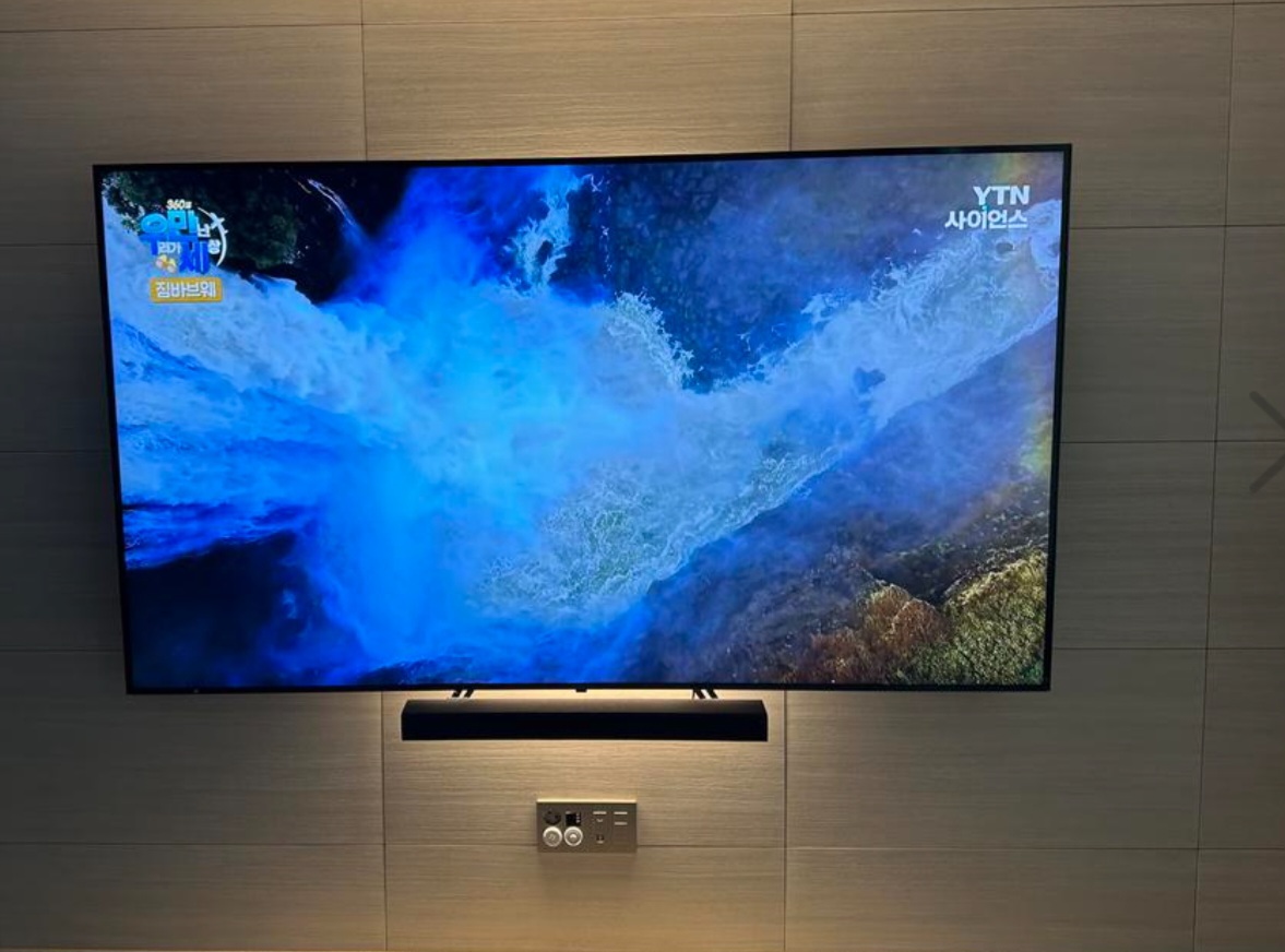 저희 집은 20평 후반대의 거실인데, 이 정도 크기는 잘 어울리지만, 더 작은 공간에서는 조금 부담스러울 수 있을 것 같아요. 하지만 대형 TV를 통해 느끼는 시청 경험은 그 어떤 작은 TV와 비교할 수 없을 정도로 뛰어나기 때문에, 공간의 크기보다 시청 경험을 우선시한다면 이 선택은 탁월한 결정이 될 것입니다.